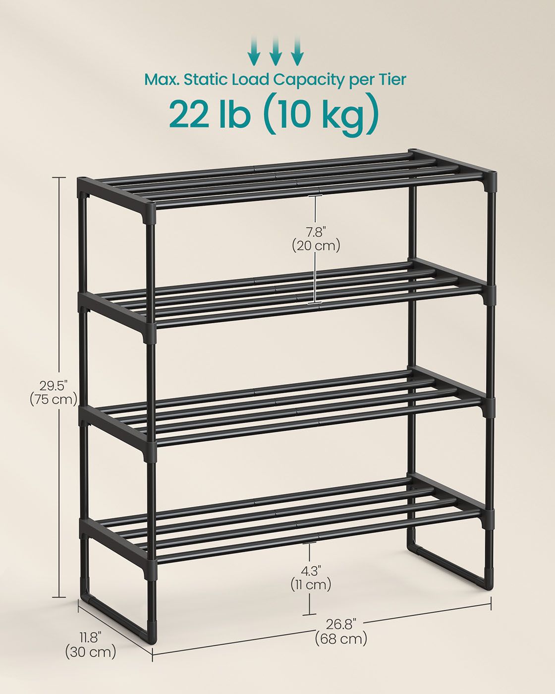 VIVSO Shoe Rack - 4 Tier Storage Medium Sized Rack - Black