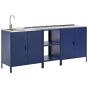 VLIAMA 3 Piece Outdoor Kitchen Set with Sink Metal 2 Cabinet with Open Shelf Blue