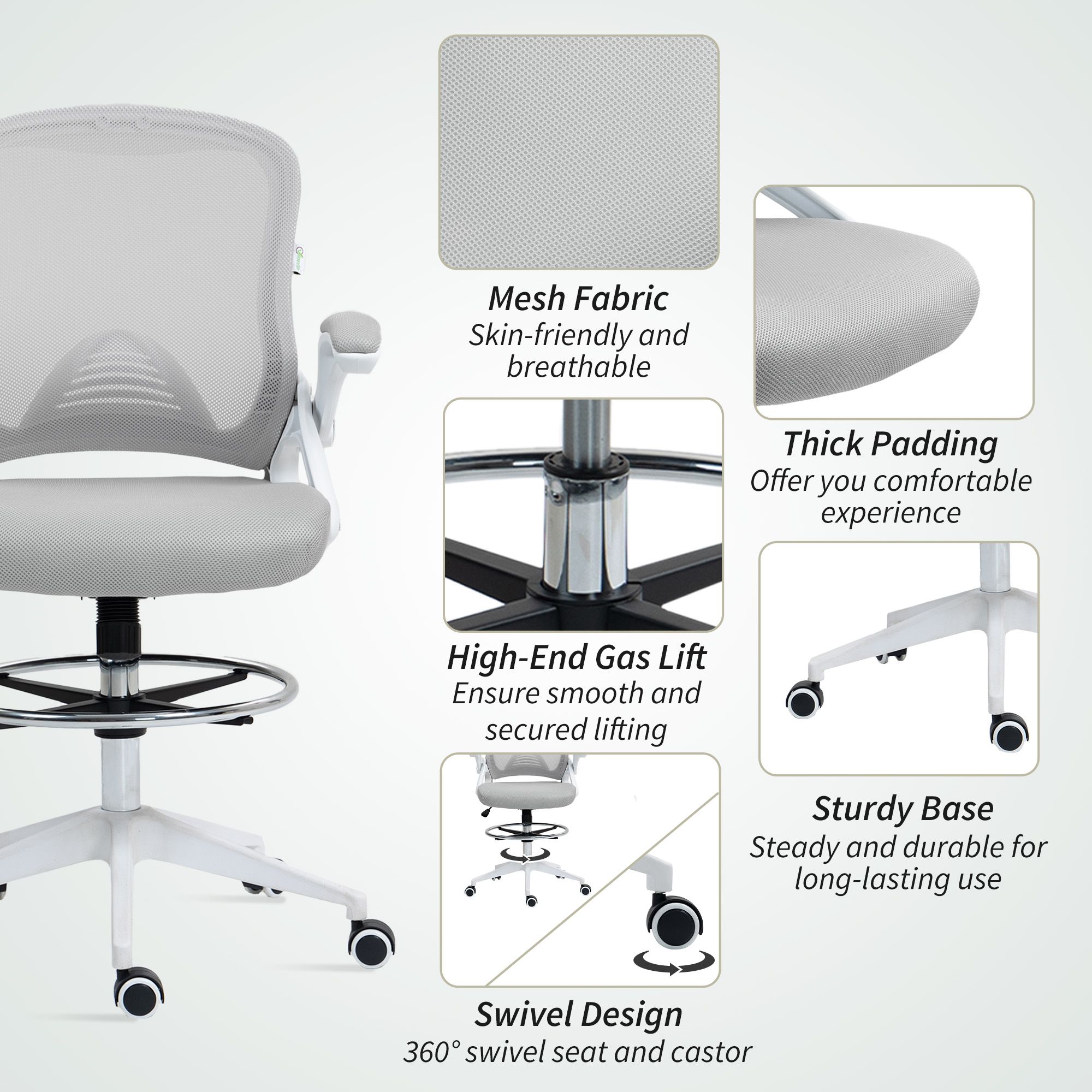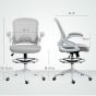 VONSETTA Drafting Chair with Flip-Up Arms & Foot Ring, Height Adjustable Mesh Office Stool, Light Grey