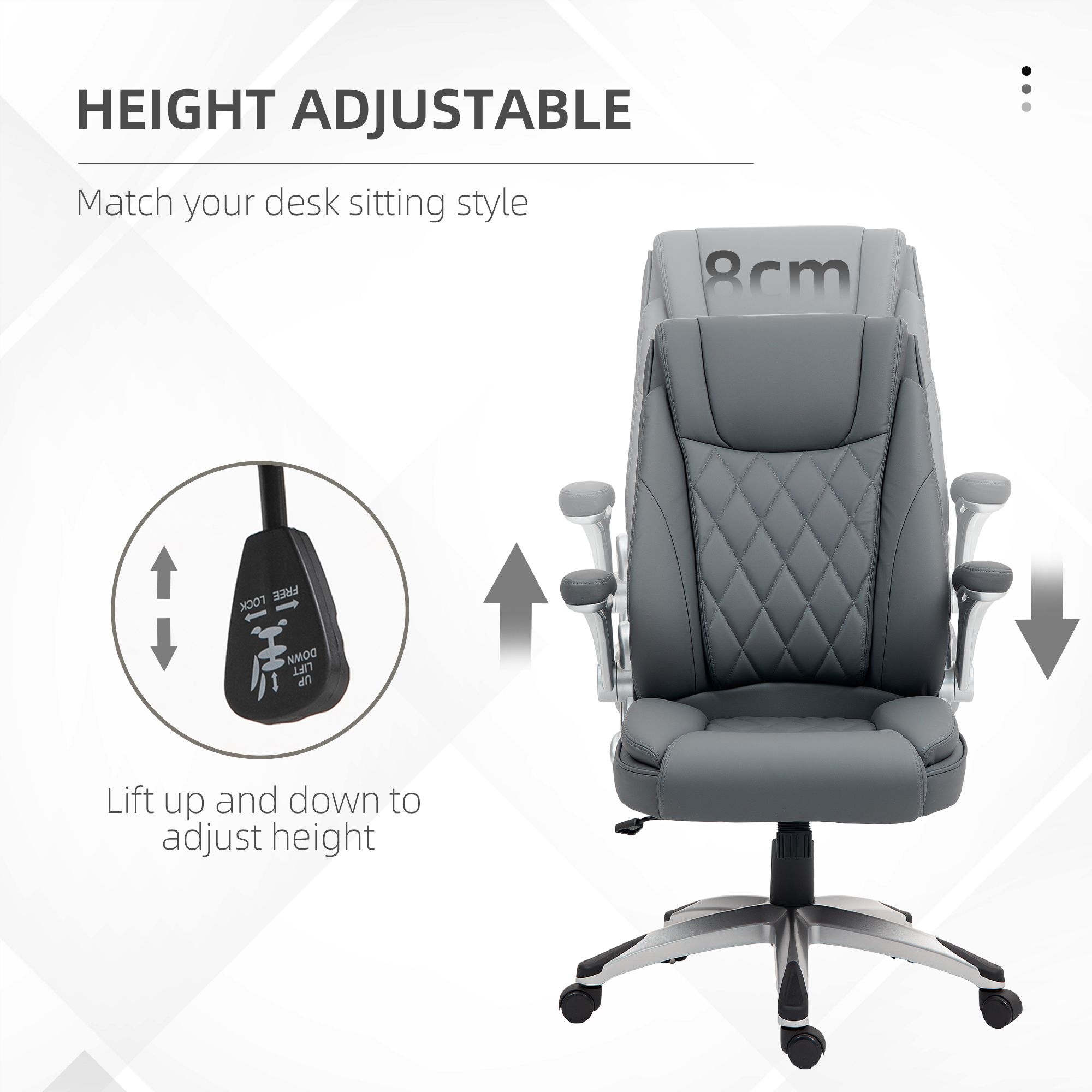 VONSETTA Faux Leather Executive Swivel Office Chair - Dark Grey
