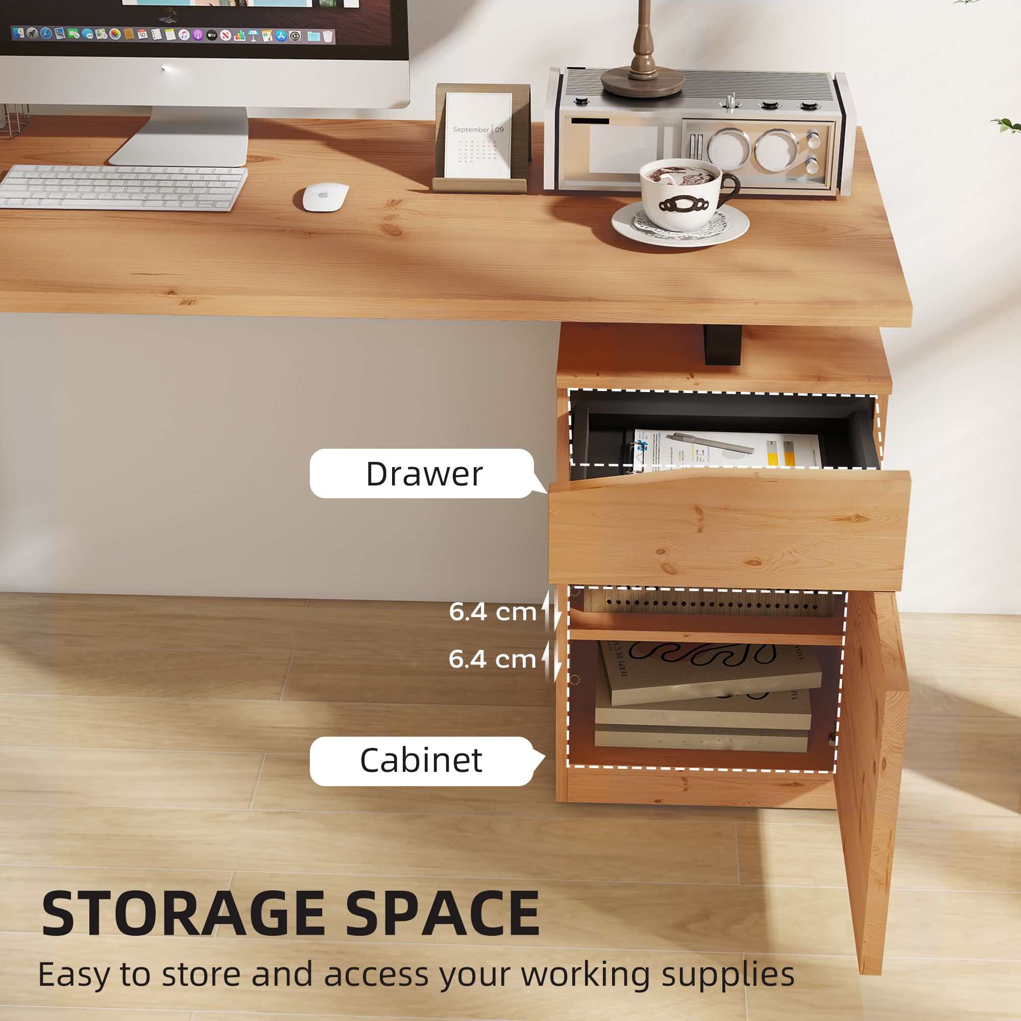 VORLETH Wooden Office Desk with Cabinet and Drawer - Light Oak