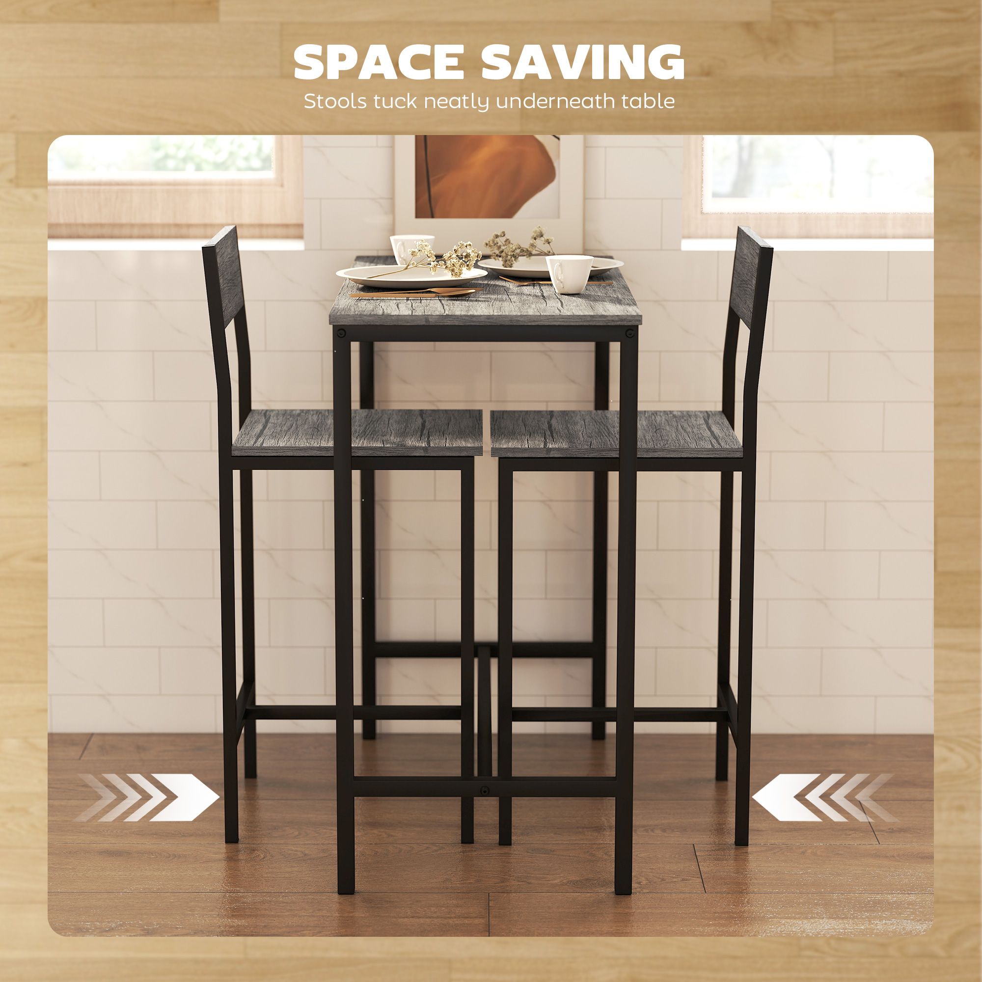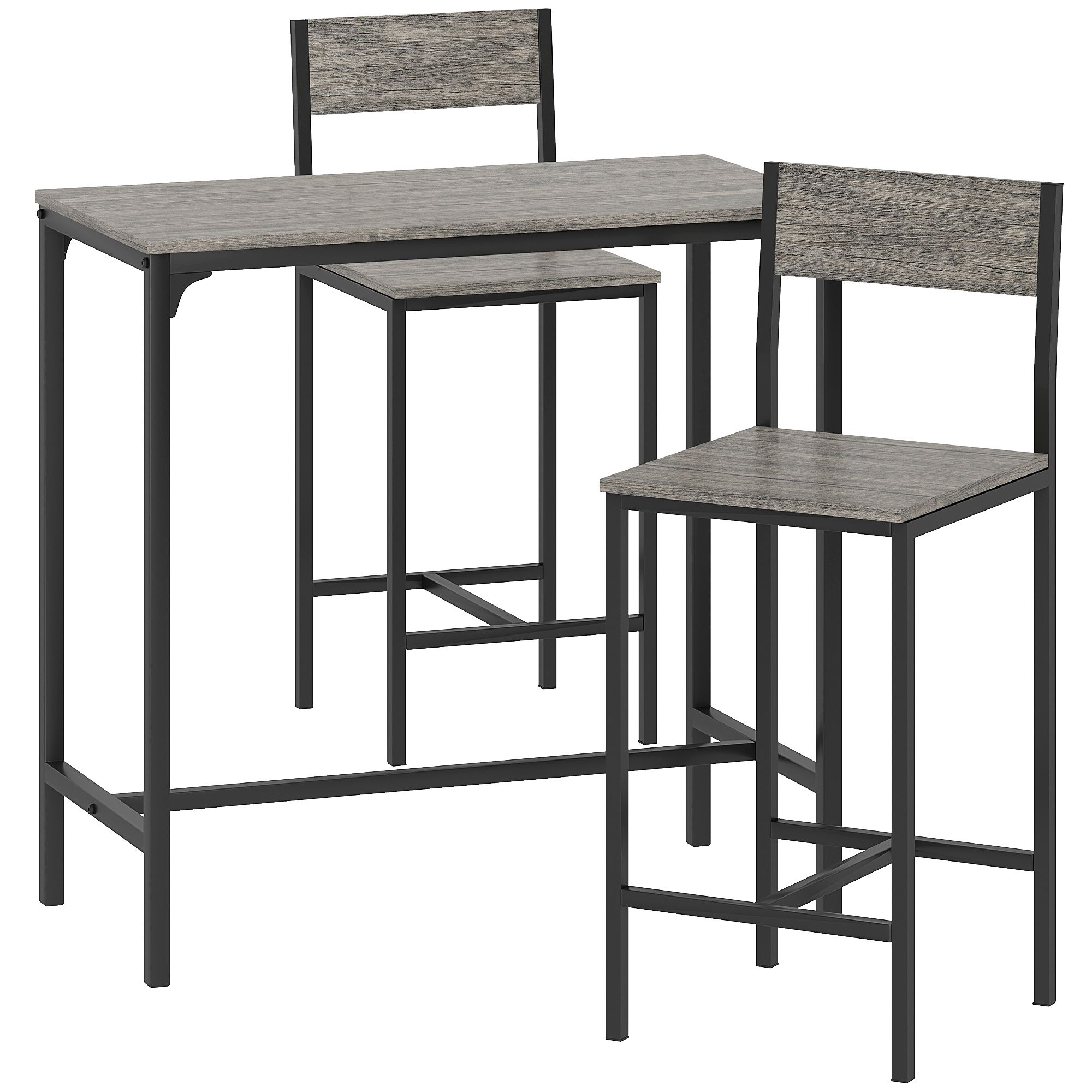 VORNELL Rectangular 3 Piece Bar Table with 2 Stools, Footrest and Backrest - Grey