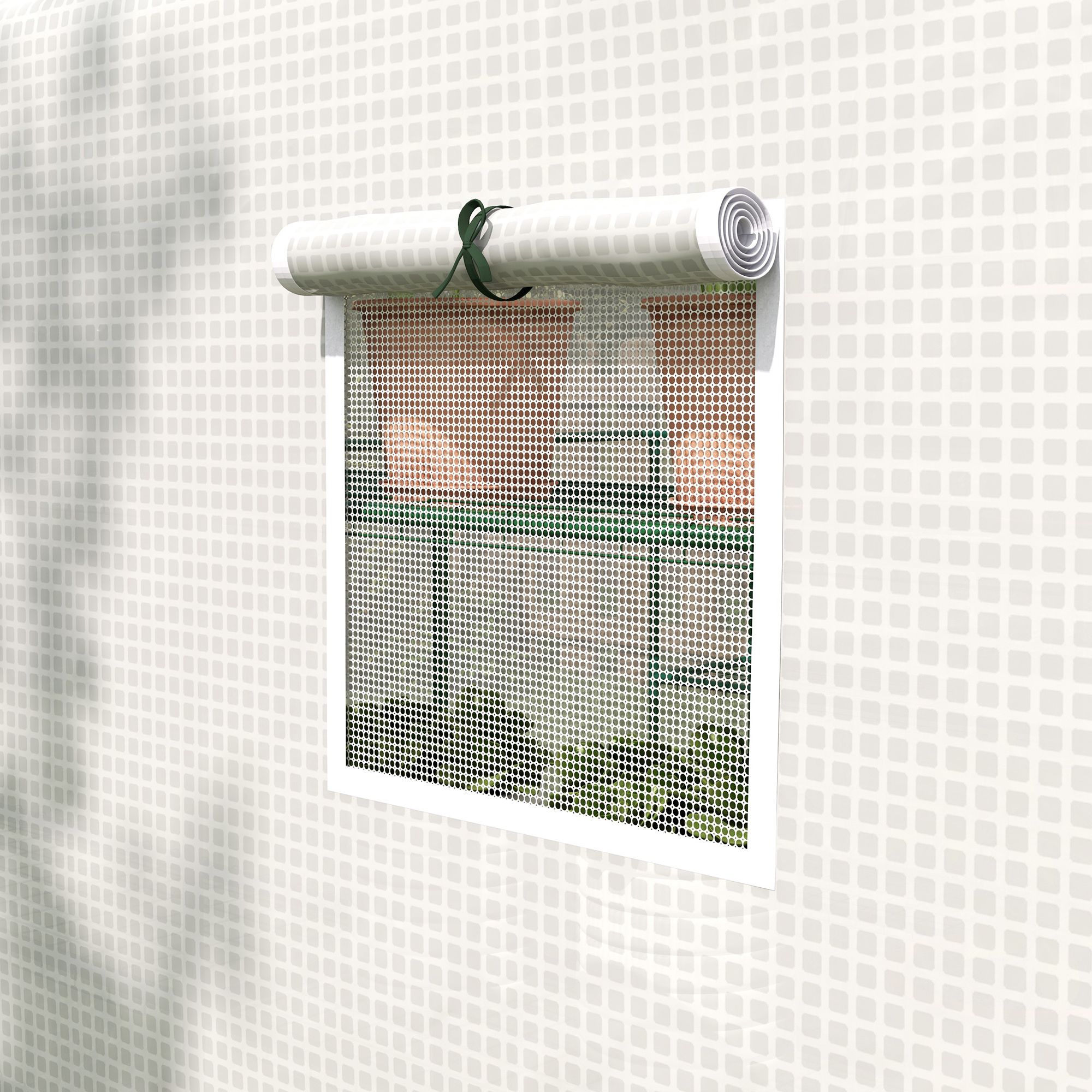 Walk-in Greenhouse w/ 3 Tier Shelves, Green House Garden Grow House w/ PE Cover, Roll-up Door, Mesh Windows, 140 x 213 x 190cm, White