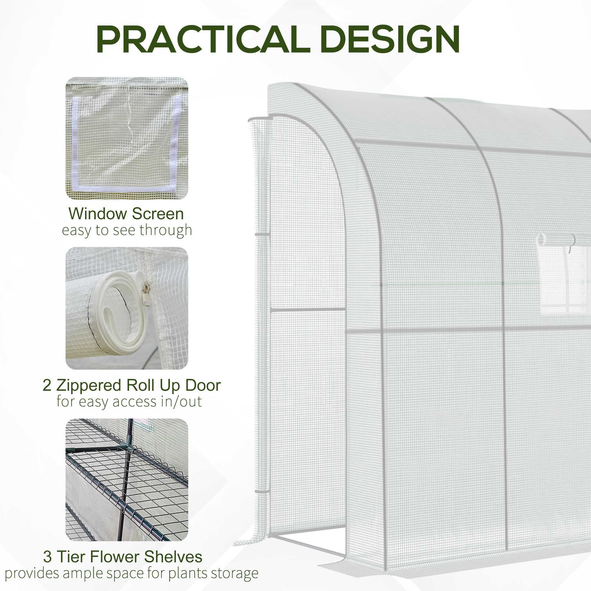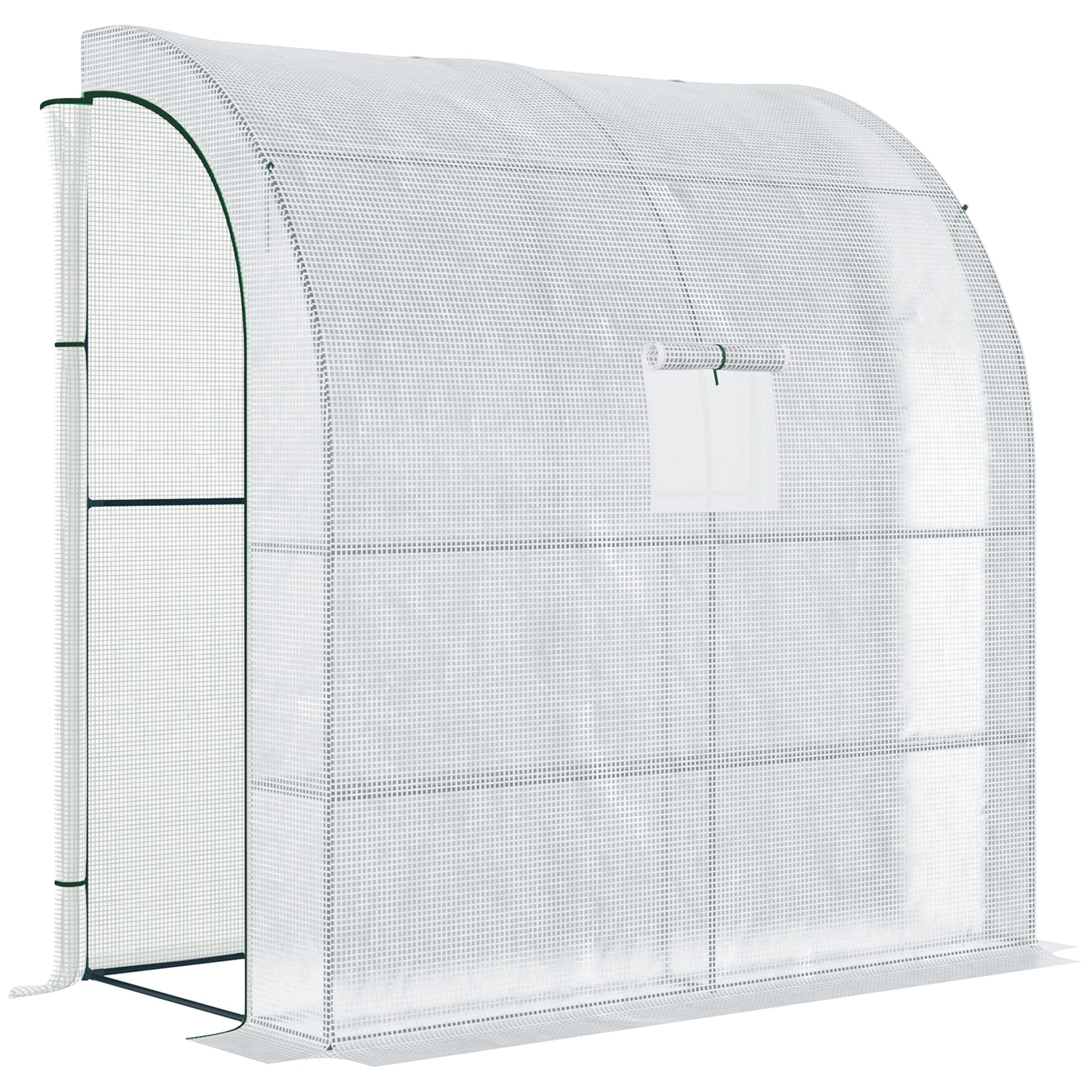 Walk-In Lean to Wall Greenhouse with Windows and Doors 2 Tiers 4 Wired Shelves 200L x 100W x 215Hcm White