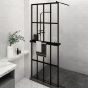 Walk-in Shower Wall with Shelf Black 80x195cm ESG Glass and Aluminium