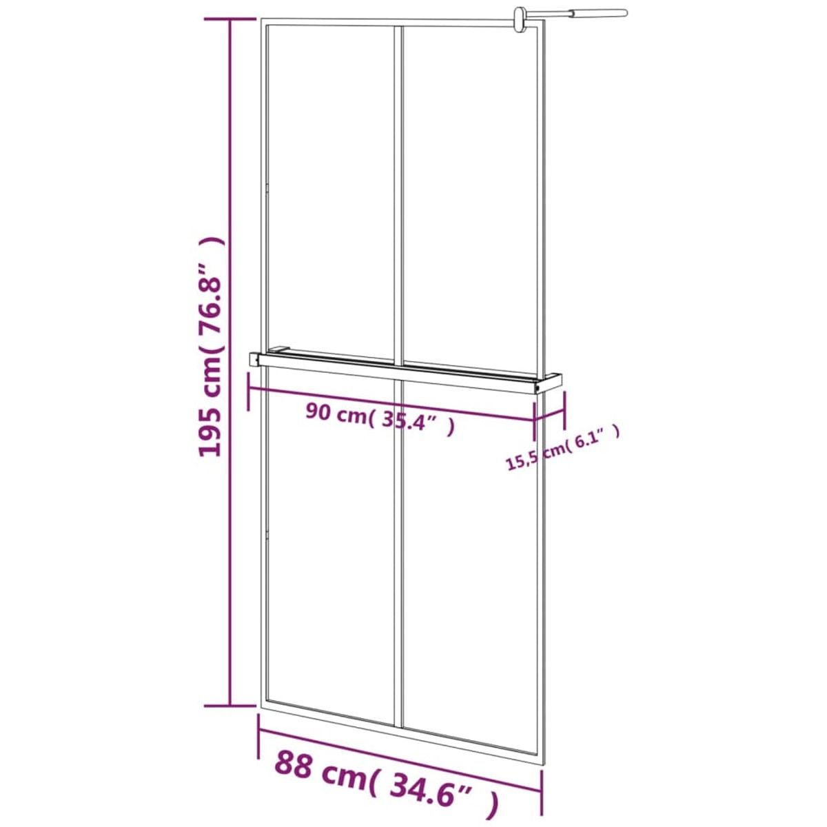 Bring a fresh appearance of aesthetics to your bathroom with our modern walk-in shower wall with a shelf! Strong material: With a smart structure, ESG glass is stronger and more durable than any other glass. ESG glass is known for withstanding forces like high impacts, scratches, blows, etc.Stable frame: The shower screen is supported by an aluminium frame, and you can be sure that the structure remains strong once mounted. Aluminium metal is lightweight and strong. It's resistant to corrosion with a self-protecting oxide layer.Flexible design: The adjustable profile and the flexible supporting bar make the shower enclosure easy to fit any bathroom size and layout.Practical function: The shower shelf for bath shower screen is a great choice to place your bathroom items such as towels, shampoo, conditioner, facial cleansers and other skin care products.Minimalist design: The clean lines and a simple look make the walk-in shower screen blend into your bathroom perfectly. Good to know:To make assembly as easy as possible, each product is delivered with a manual.