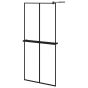 Walk-in Shower Wall with Shelf Black 90x195cm ESG Glass and Aluminium