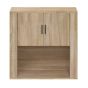 This practical and decorative hanging wall cabinet introduces an air of unique charm to your existing interior. Practical material: The engineered wood is of exceptional quality with smooth surface and also features strength, stability and resistance to moisture. Made of engineered wood, this hanging cabinet is easy to clean.Ample storage: This wall-mounted cabinet offers sufficient space to keep things organised.Wall-mounted design: The side cabinet can be wall-mounted to add extra storage space. That way, you can maximise your floor space and keep the area clean.Versatile home organiser: You can also put it on the top of a sideboard to make a highboard, creating extra storage space. Warning:In order to prevent overturning, this product must be used with the wall attachment device provided. Note:Screw(s) and plug(s) for inside the wall are not included. Seek and use screw(s) and plug(s) suitable for your walls. If you are uncertain, seek professional advice. Read and follow each step of the instruction carefully.Each product comes with an assembly manual in the box for easy assembly.