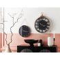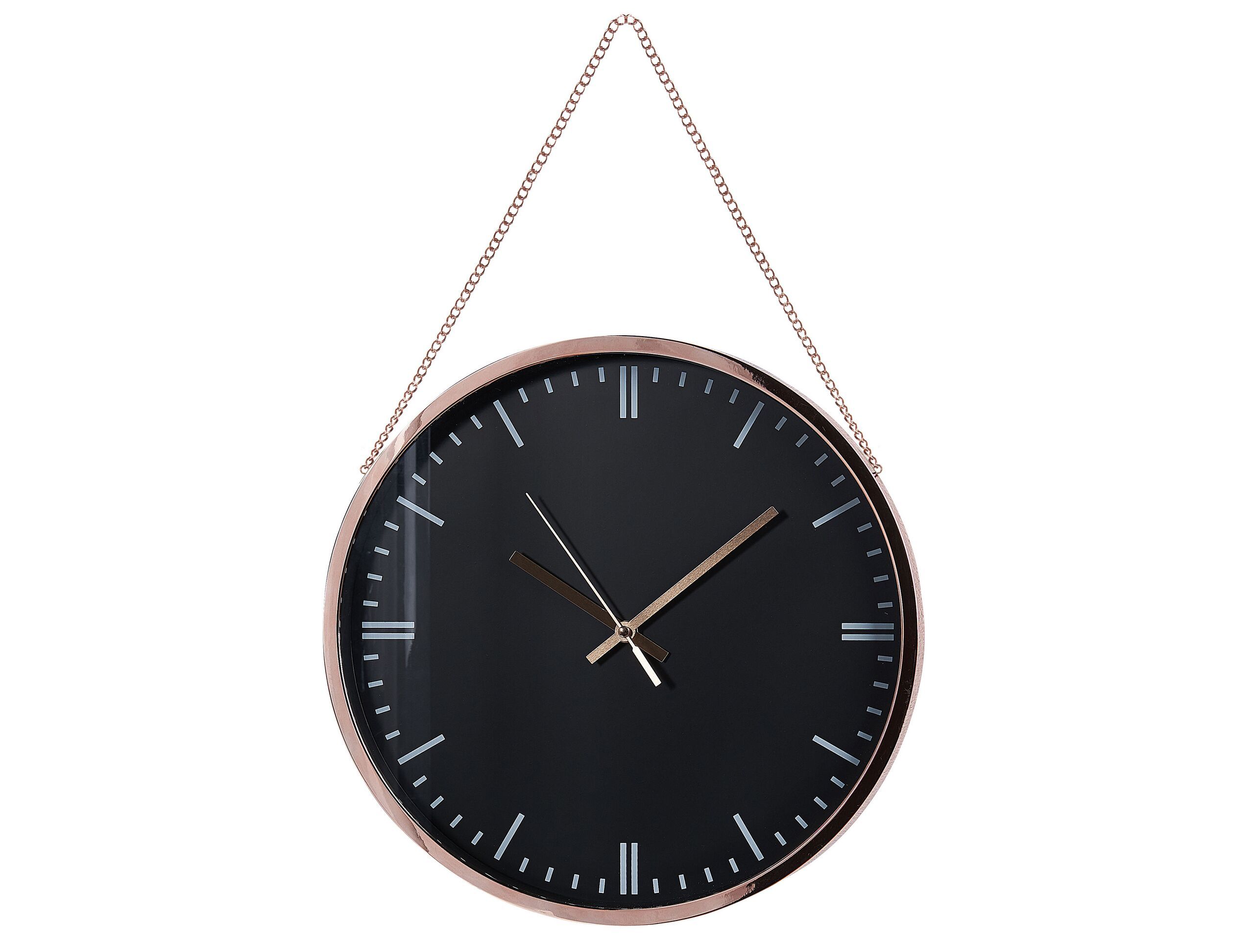 Hang this clock in your living room or hallway to instantly add a fresh, modern vibe to it. The piece features a thin chain in copper colour, which is a perfect match for the simple, black face of the clock. As the item is made out of synthetic material, it won't require daily care to last for many years, enchanting your guests with its wonderful design. Details: Color: Black, Copper. Main material: Synthetic Material. Additional material: Aluminium, Glass. Weight: 1 Assembly: Does Not Require Assembly