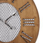 This retro-inspired wall clock makes a splendid addition to any contemporary and traditional interior. It's handmade wooden frame features carved out Roman numerals, which add chic and elegance to the piece. The dark, natural finish is contrasted with a black and white face decorated with a diamond pattern, so the clock looks great on both, dark and light walls. Details: Color: Dark Wood, White, Black. Main material: Fir Wood. Additional material: Synthetic Material, Metal, MDF. Weight: 2 Assembly: Does Not Require Assembly