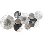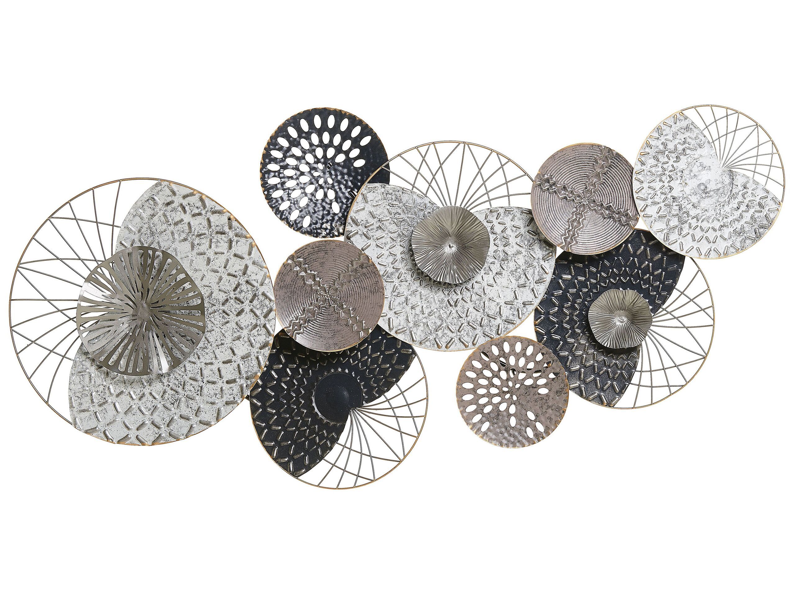 This wall décor made of white, silver, black and copper circles will certainly add an industrial feel to any interior. The construction is stable and durable yet delicate in its look. The slightly distressed finish makes the piece a perfect addition not only to industrial and modern but also retro inspired interiors. Thanks to the inbuilt hangers and unique composition the piece can be suspended horizontally as well as vertically. Details: Color: Black, Silver, White, Gold. Main material: Metal. Weight: 3 Assembly: Does Not Require Assembly