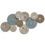 Glow up your living area with this fascinating modern wall decor. Round metal plates irregularly arranged in an extraordinary 3D composition will add an oriental feel to any interior. The inbuilt hooks allow for the composition to be hung horizontally or vertically. Place it over a cupboard or a sofa and enjoy this new eye-catching decorative element at your home. Details: Color: Blue, Beige, Copper. Main material: Metal. Weight: 1 Assembly: Does Not Require Assembly