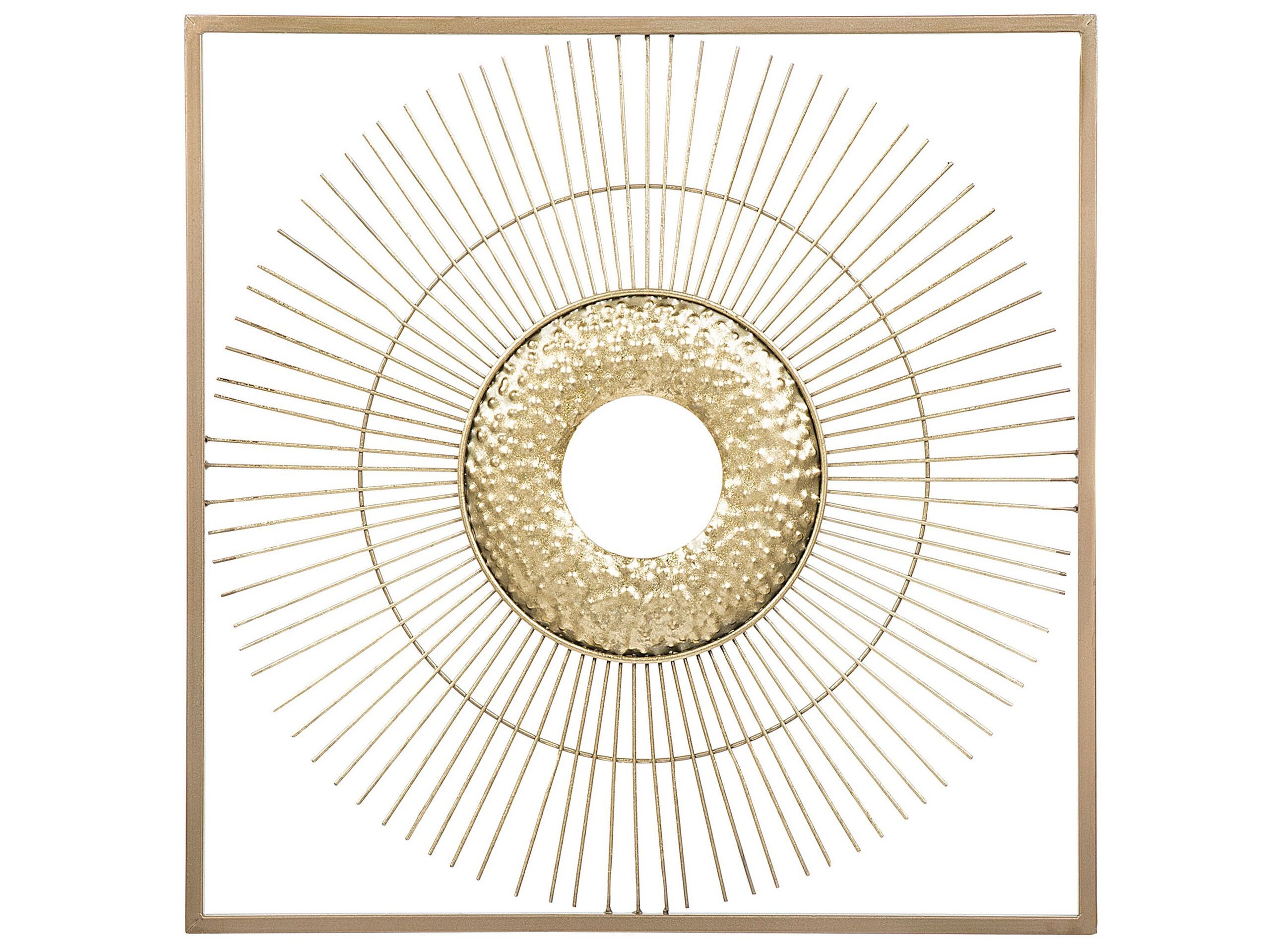Enrich your surroundings with this minimalist wall decor. Thanks to its slender, sleek shape that resembles the sun, it blends perfectly with any interior design. Crafted from high-quality metal that ensures the piece's longevity, it will last for many years hung in a living room or in a bedroom. With its square frame and circular central panel, it works well in a modern, glam, vintage or minimalist space. Details: Color: Gold. Main material: Metal. Weight: 1 Assembly: Does Not Require Assembly