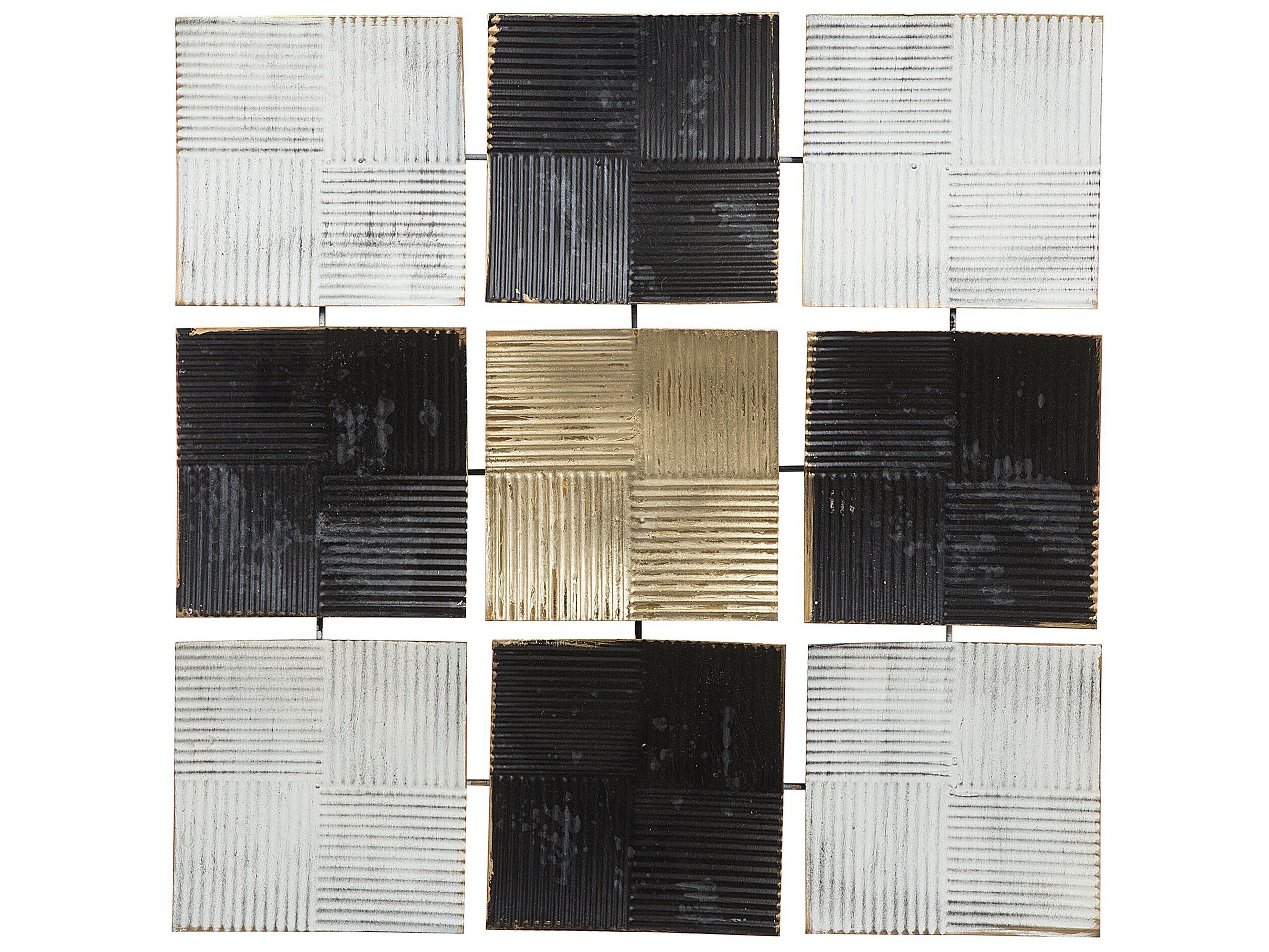 This wall decoration is an ideal choice for anyone willing to create a unique décor in their living room or bedroom. This decorative piece is made of high-quality metal, painted in classic black-and-white with a central gold-coloured square. Make your living room yet more stylish with this stunning wall art. Details: Color: White, Black, Gold. Main material: Metal. Weight: 1 Assembly: Does Not Require Assembly