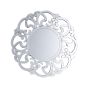 This mirror represents a perfect fusion of antique and modern styles. Inspired by Victorian forms, the frame features an intricate pattern that surrounds the round mirror plate. Wherever hung, in the bedroom, living room bathroom or even in the hall, it brings out the most distinctive features of any decor and enlarges the room visually. Apart from being decorative, it can serve as a vanity mirror. Details: Color: Silver. Main material: MDF. Additional material: Glass. Weight: 7 Assembly: Does Not Require Assembly