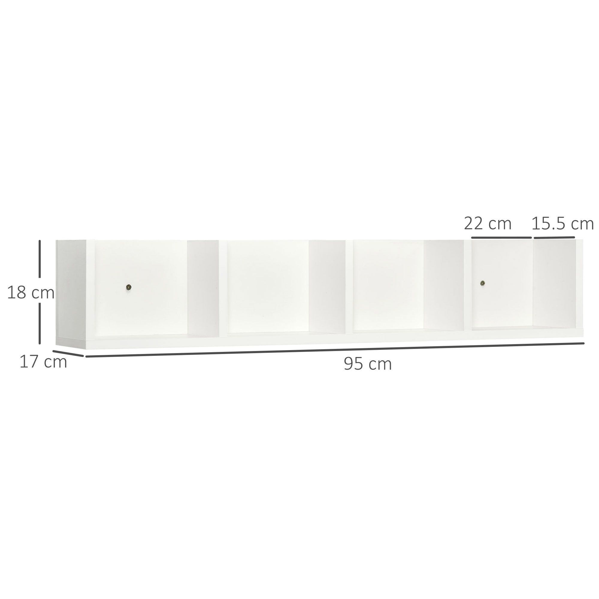 Wall Mount 84 CD / 56 DVD/Blu-ray/ Media Storage Rack 4 Cubes Wooden Shelf Organizer Unit Bookcase Display (White)