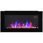 Wall Mounted 2000W Tempered Large LED Flat Glass Electric Fireplace Heater - Black