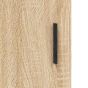 This wall mounted cabinet with an elegant design makes a timeless addition to your interior decor. Durable material: The engineered wood is of exceptional quality with smooth surface and also features strength, stability and resistance to moisture. Made of engineered wood, this storage cabinet is sturdy and durable. Ample storage space: The hanging cabinet offers ample storage space for keeping your various daily essentials well organised and within easy reach.Wall-mounted function: The hanging wall cabinet doesn't take any floor space. You can hang it on the wall easily.Practical design: Your belongings are visible behind the glass door and at the same time protected from dust. In addition, the handles make it easy to open the side cabinet.Versatile cabinet: You can also put this floating storage cabinet on top of a sideboard to form a highboard, creating extra storage space. And the simple design makes it suitable for your living room, bedroom, study, and any other living space. Good to know:Screws and plugs for inside the wall are not included. We advise to find and use screws and plugs suitable specifically for your walls. If you're not sure, you can consult with a professional. Please read and follow each step of the instructions.