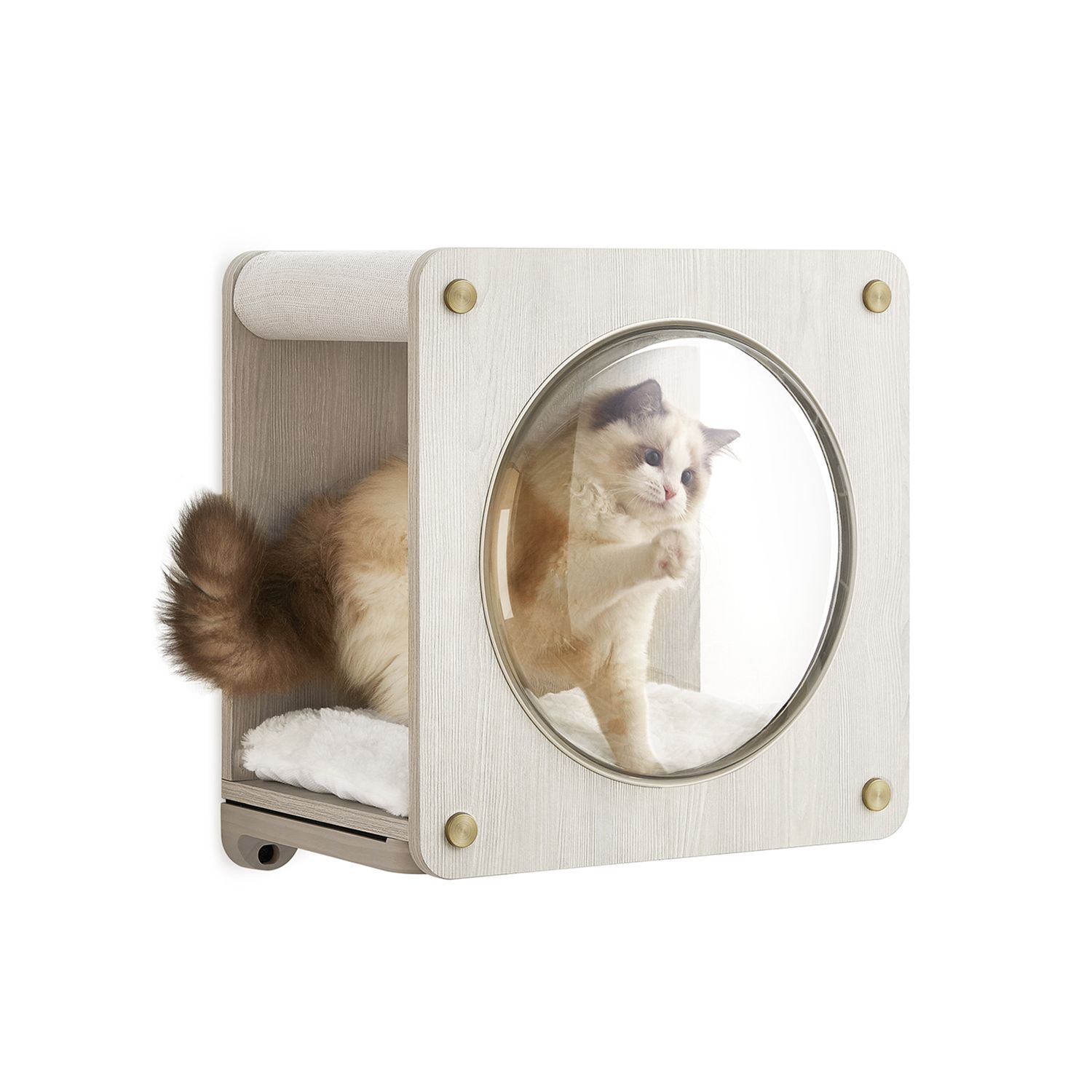 Introducing our Wall-Mounted Cat Cave with Observation Window, providing a cozy retreat for your feline friend to rest and observe their surroundings. Crafted with durable materials and featuring an observation window, it offers stimulation and security. Easily mountable on any wall, it saves space while adding an intriguing element to your home decor. Treat your cat to a private sanctuary with this stylish and functional cat cave.