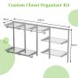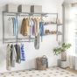 Wall-Mounted Closet Organizer System with Wire Shelving and Cloth Rods-Grey