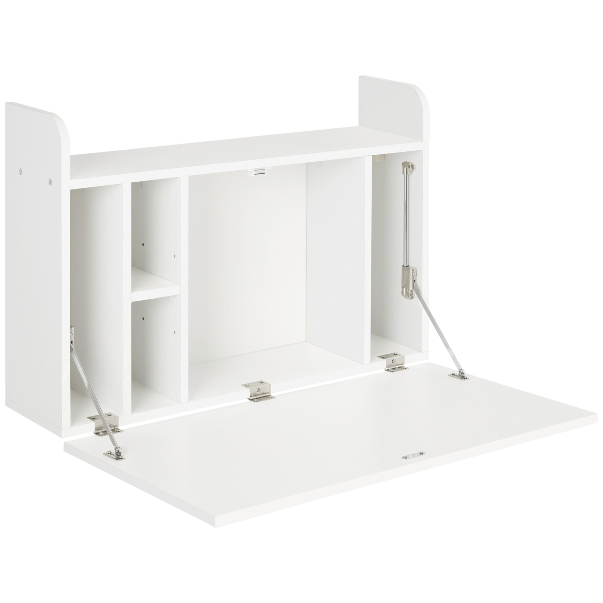 Wall Mounted Table, Drop Leaf Floating Laptop Desk with Space Saving Storage Compartments for Home, Office and Study, White