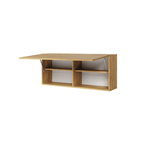 The Barcena Wall Shelf is a stylish and functional addition to any room, measuring 102cm in width and finished in a contemporary Oak Hickory color. This shelf features a convenient pull-up door and two spacious shelves, providing ample storage for books, decor, or personal items. Crafted from 16mm high-quality laminated board, it ensures durability and a sleek appearance. The shelf is designed to complement matching furniture pieces, enhancing the overall aesthetic of your space. Please note that assembly is required, and specific wall mounting fixings are not included, as they depend on your wall type.