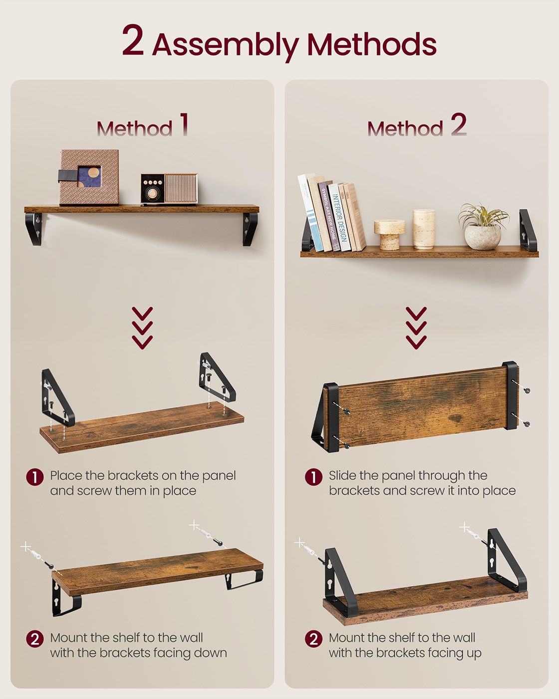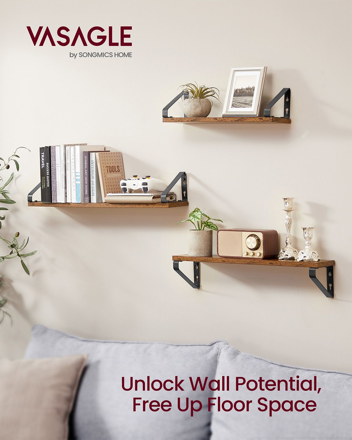 Wall Shelves - ARCNOS Set of 3 Rustic Brown and Matte Black