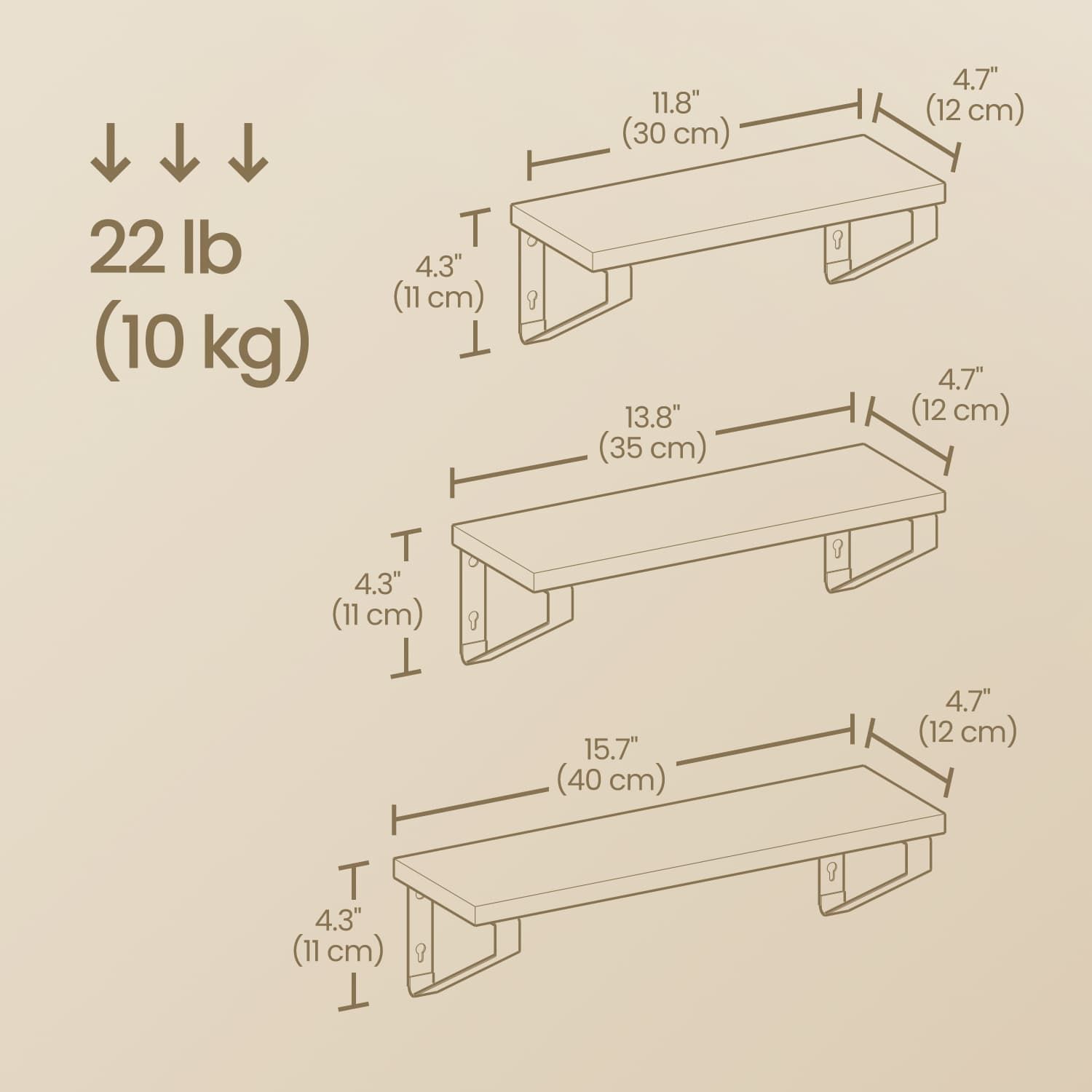 Wall Shelves - VERRA Floating Shelves Set of 3 Rustic Brown