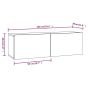 These wall TV cabinets feature a sleek and classic design. They can be easily attached to the wall, making them a decorative and practical extension to your decor. Sturdy engineered wood: The engineered wood is of exceptional quality with smooth surface and also features strength, stability and resistance to moisture. Made of engineered wood, these TV cabinets are easy to clean.Ample storage: Each TV stand features 2 compartments which make it an ideal place for storing all your magazines, DVDs or other items.Wall-mounted design: These TV units can be wall-mounted to add extra storage space. That way, you can maximise your floor space and keep the area clean.Practical doors: The media cabinet's two doors keep your space clutter-free by hiding small essentials behind the doors. Additionally, the door features a drop-down design, which makes it easier to get items. Note:Screw(s) and plug(s) for inside the wall are not included. Seek and use screw(s) and plug(s) suitable for your walls. If you are uncertain, seek professional advice. Read and follow each step of the instruction carefully.Each product comes with an assembly manual in the box for easy assembly.