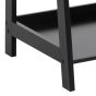 Our bookcase is a striking addition to any room, featuring a black painted MDF frame and five shelves that create a distinctive step-shaped silhouette. It's a stylish and functional piece that will complement your space with its bold design and ample storage capacity.