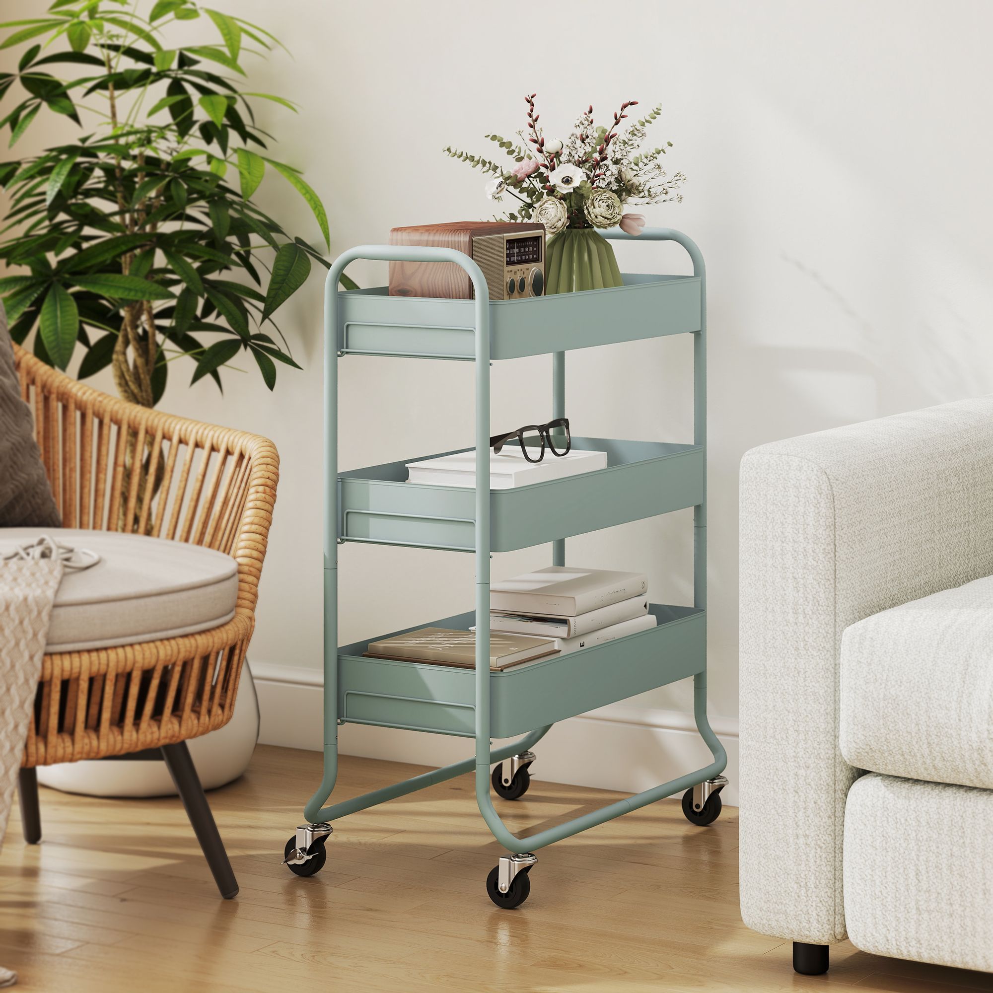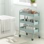 WALVORN 3-Tier Storage Trolley on Wheels with Rolling Utility Cart and Mesh Backets - Green