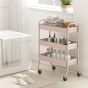 WALVORN 3-Tier Storage Trolley on Wheels with Rolling Utility Cart and Mesh Backets - Pink