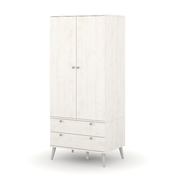 The Alessia 2 Door 2 Drawer Wardrobe combines functionality and style in a sleek design. Its two doors open to reveal a spacious interior with a hanging rail, perfect for organizing your clothing and accessories. Additionally, two bottom drawers offer extra storage space for folded clothes or other items. Crafted from durable pine and finished in a clean white color, this wardrobe adds a touch of elegance to your bedroom decor. The silver handles add a modern touch to the design, enhancing its visual appeal. Experience practical storage solutions with the Alessia range from Home Done.