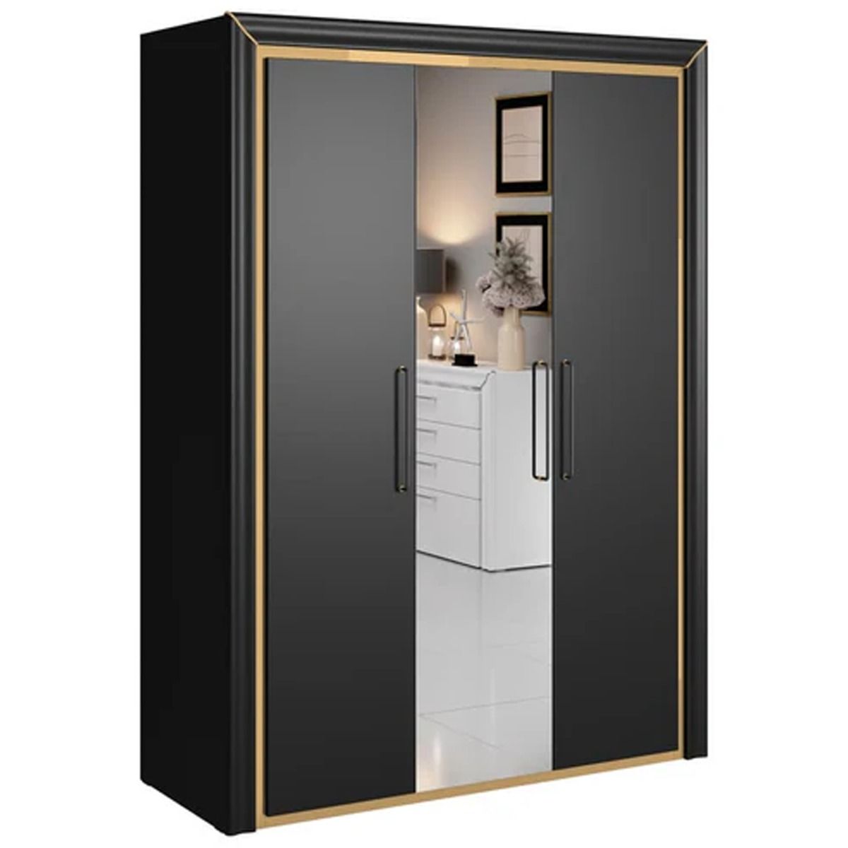 Wardrobe - ANALDA 3 Door Mirrored Wardrobe Black 155cm