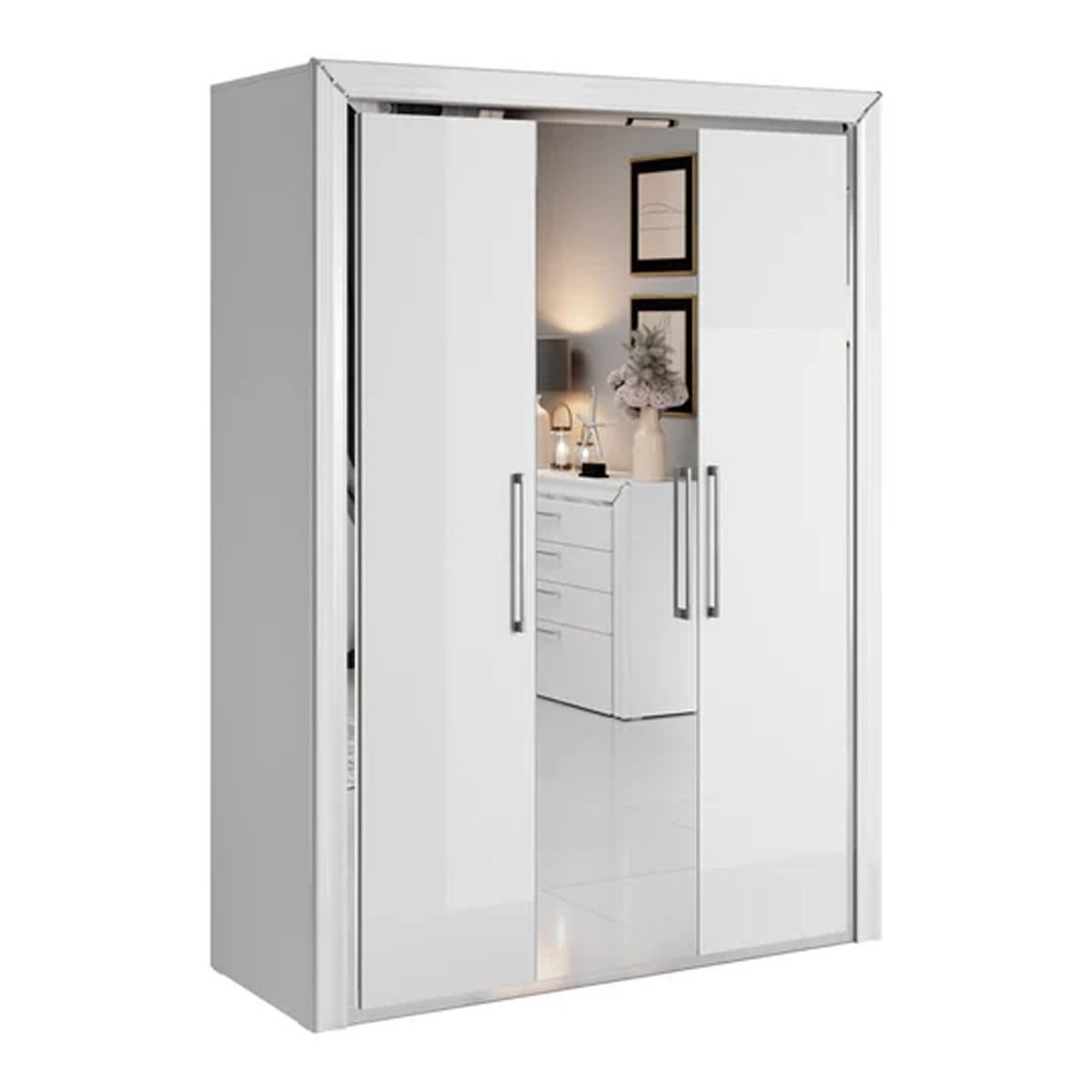 Wardrobe - ANALDA 3 Door Mirrored Wardrobe White 155cm