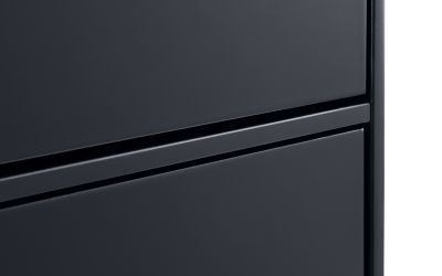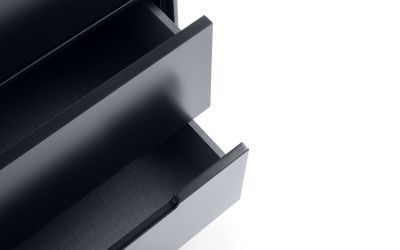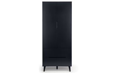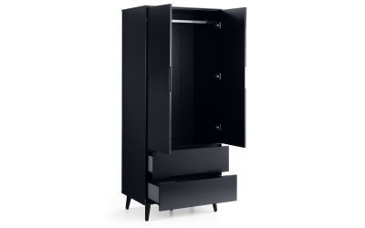 A stylish, retro-inspired wardrobe with two drawers in an immaculate matt anthracite lacquered finish, with complementary tapered black finish legs and recessed handles to provide easy opening. The sleek Scandinavian feel fits beautifully with any decor.