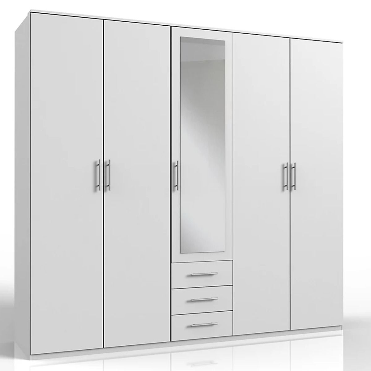 Wardrobe - BANHA 5 Door Wardrobe White 225cm
