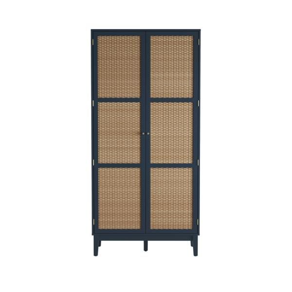 Wardrobe - BATON Rattan Effect 2 Door Wardrobe Blue - 85cm