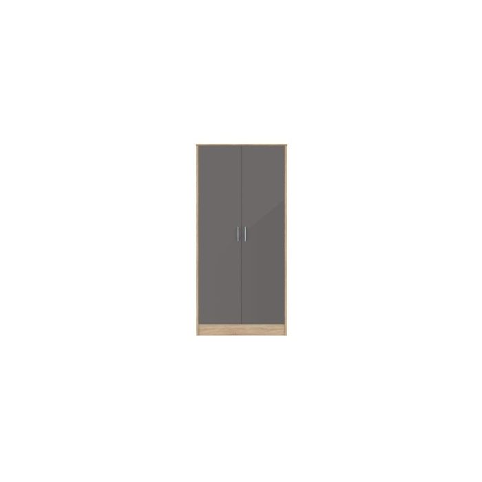 Wardrobe - BLACKPOOL 2 Door Wardrobe Grey Gloss 80cm