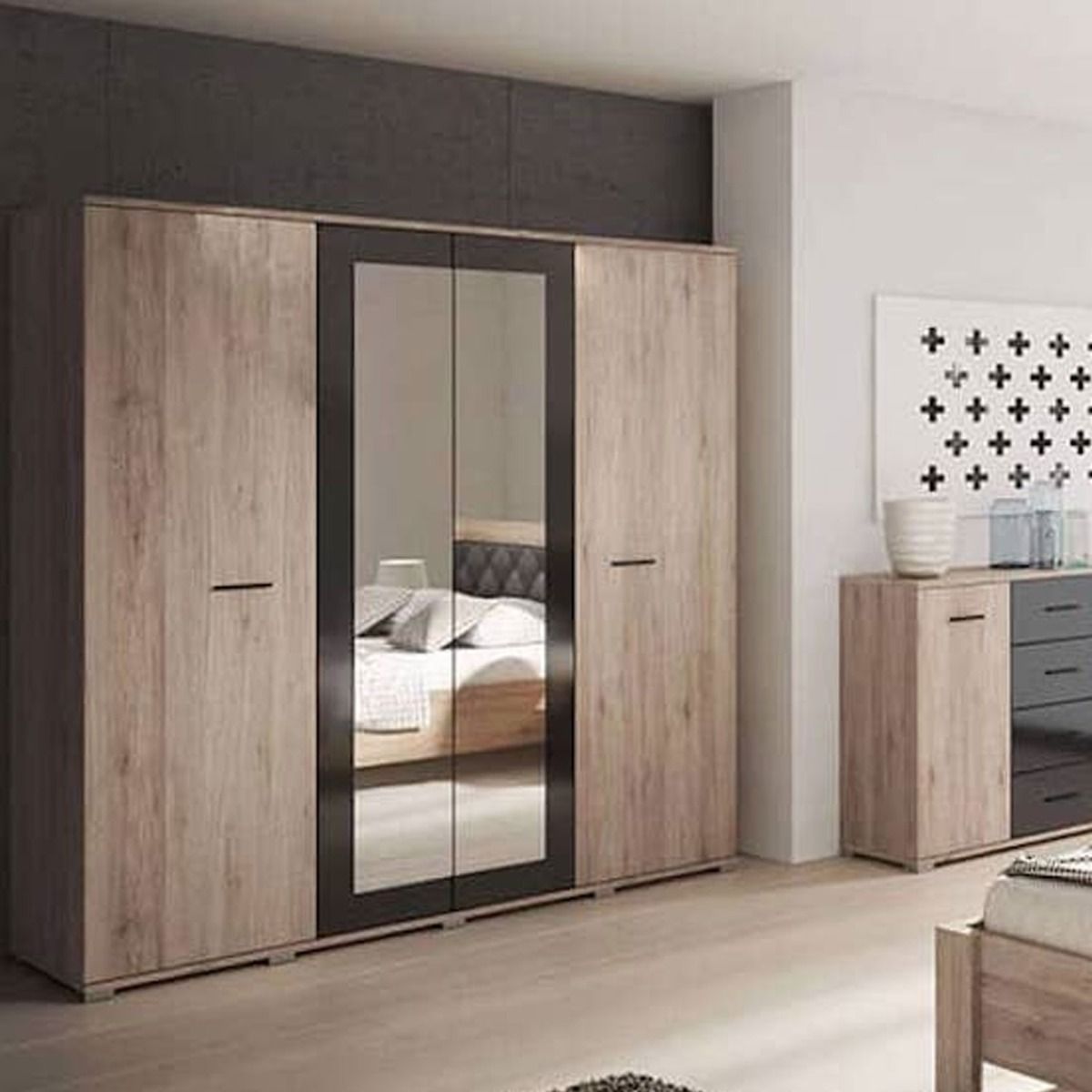 Wardrobe - BRAGA 4 Door Mirrored Wardrobe Oak San Remo 200cm
