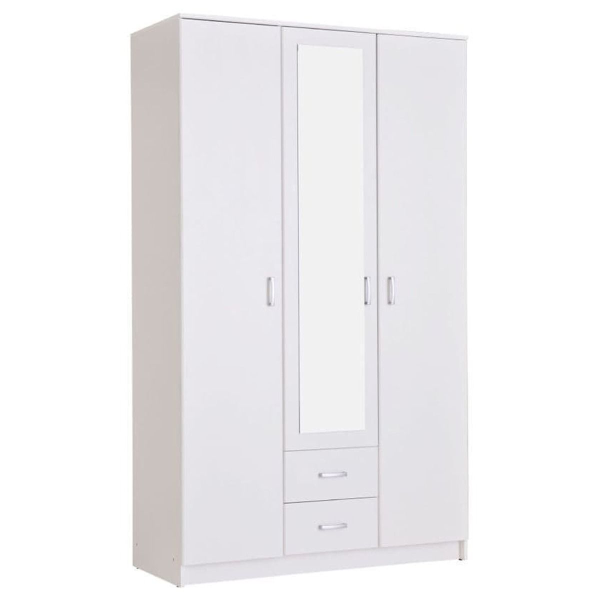 Wardrobe - BURLEIGH 3 Door Mirrored Wardrobe White 120cm