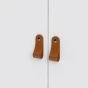 A modern large wardrobe with three doors in a striking design complete with brown leather tab handles, also available in contrasting matt black