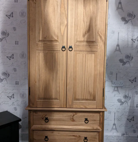 Wardrobe - CECILIA 2 Door Wardrobe Waxed Pine 76.5cm