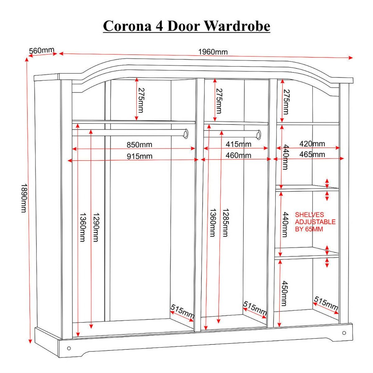 Wardrobe - CORONA 4 Door Wardrobe Antique Wax 196cm