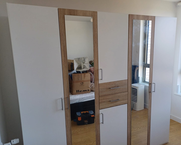 Wardrobe - DAKAR 5 Door Wardrobe White and Oak 225cm