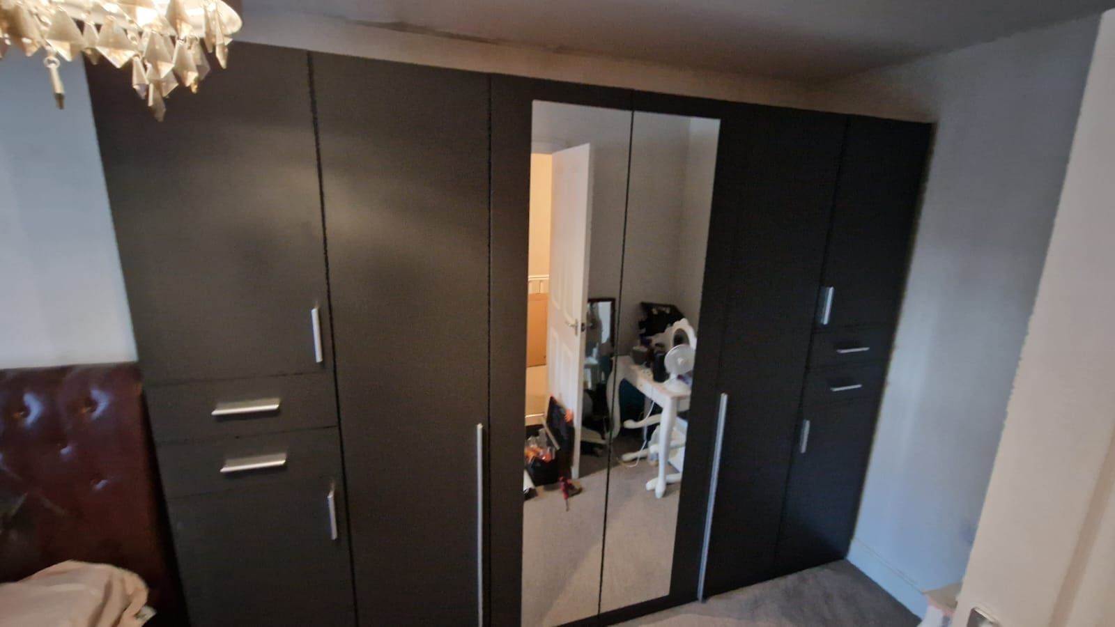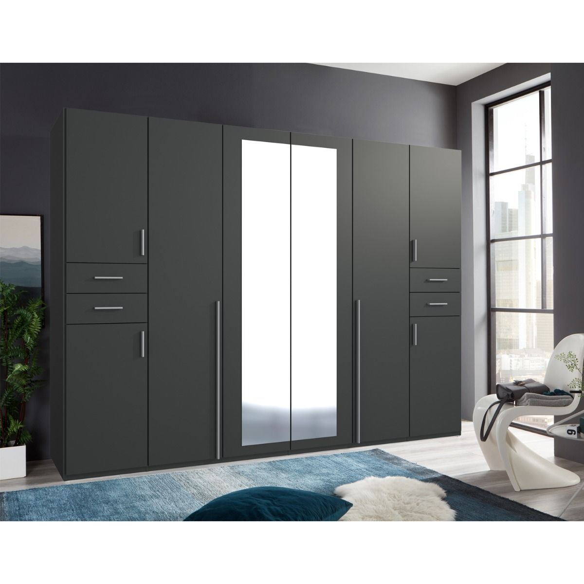 Wardrobe - FENTON 6 Door Mirrored Wardrobe Finish Graphite 270cm