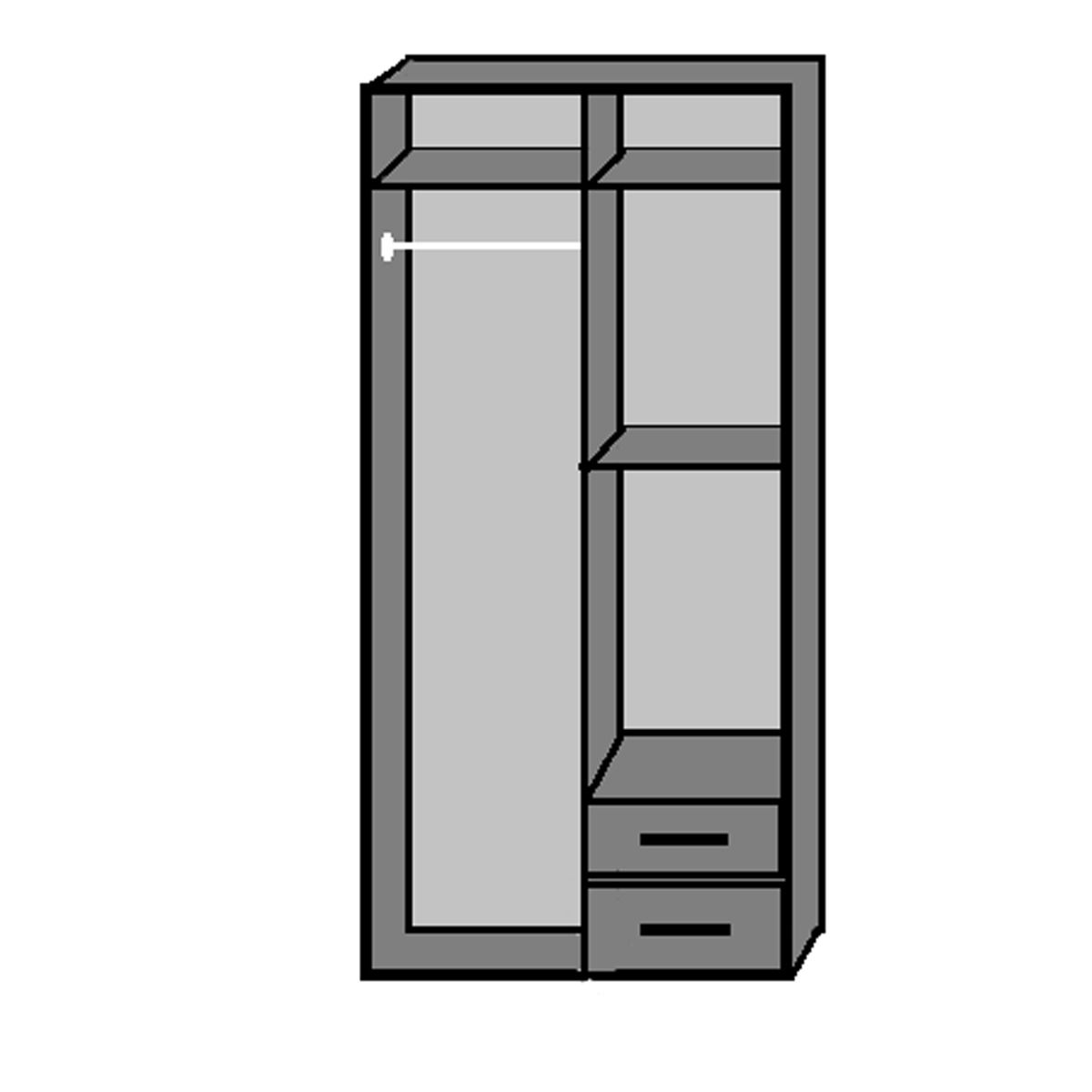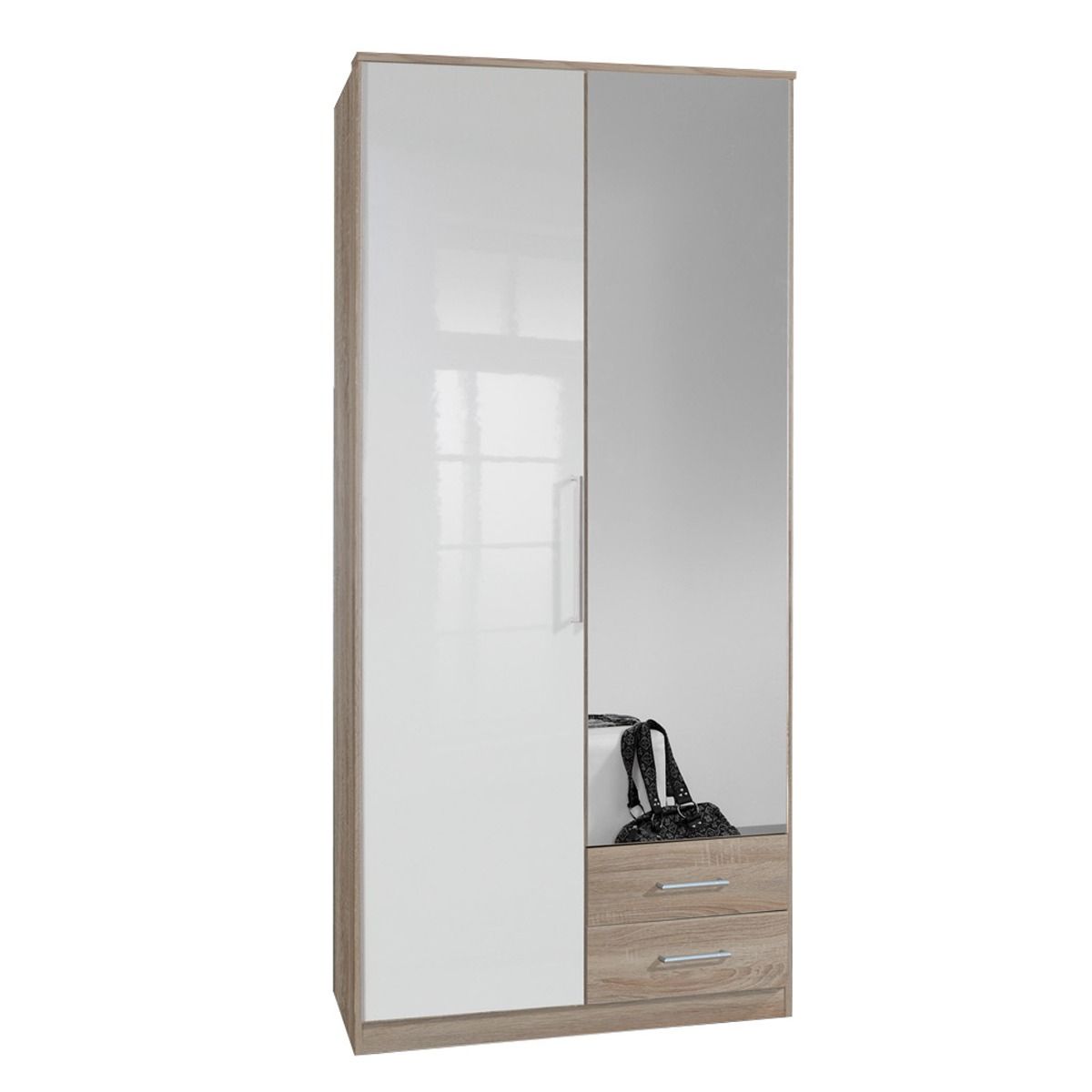 Wardrobe - GEMA 2 Door 2 Drawer Mirrored Wardrobe Oak and White Gloss 90cm