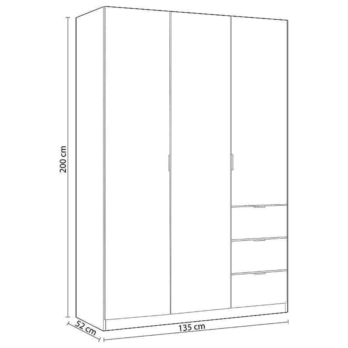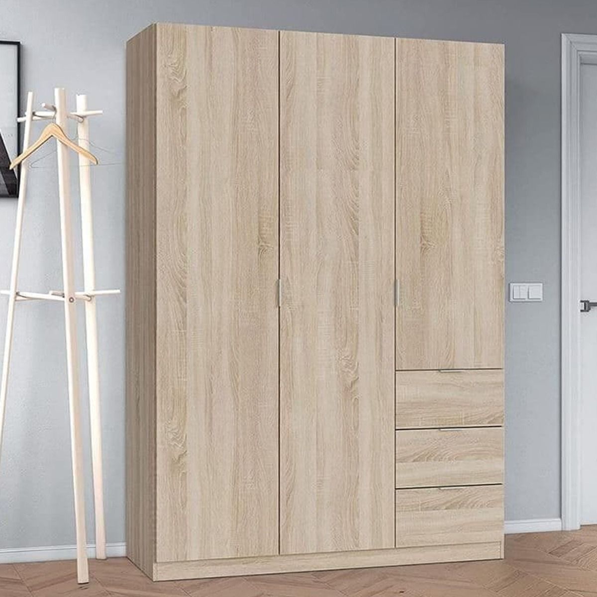 Wardrobe - HARVEY 3 Door 3 Drawer Wardrobe Oak Effect 135cm
