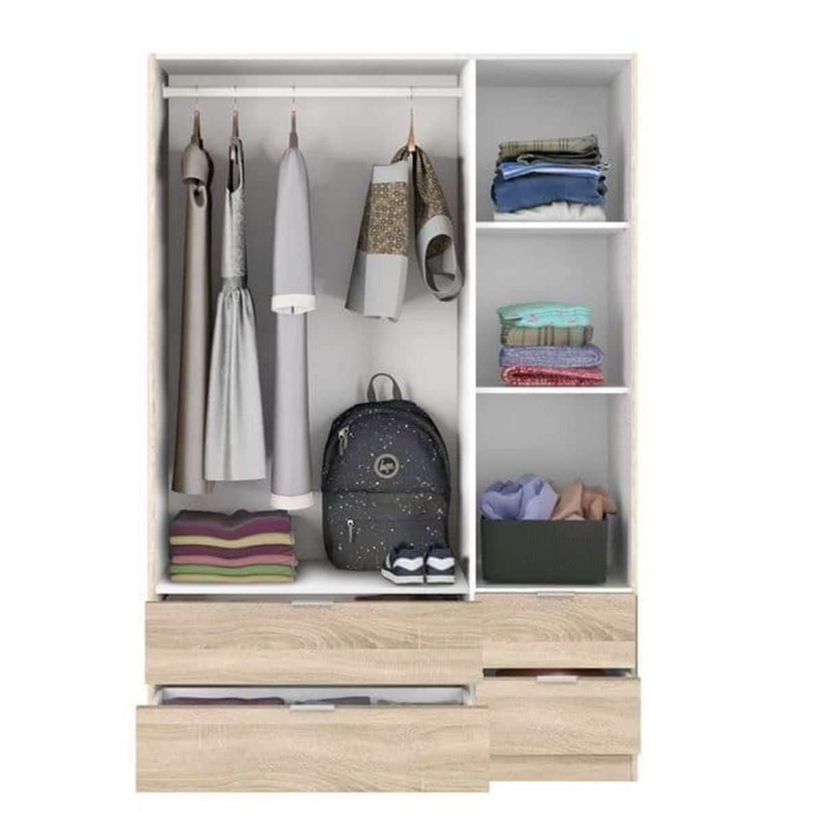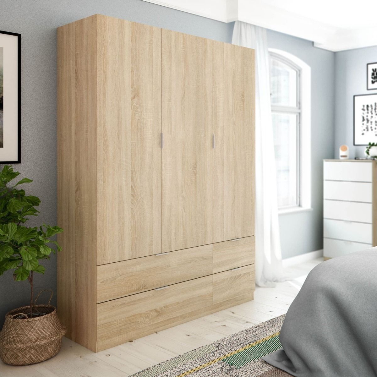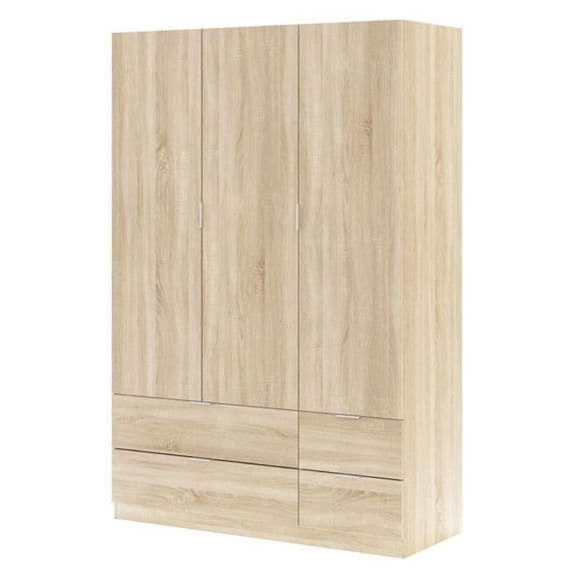 Wardrobe - HARVEY 3 Door 4 Drawer Wardrobe Oak Effect 135cm