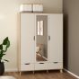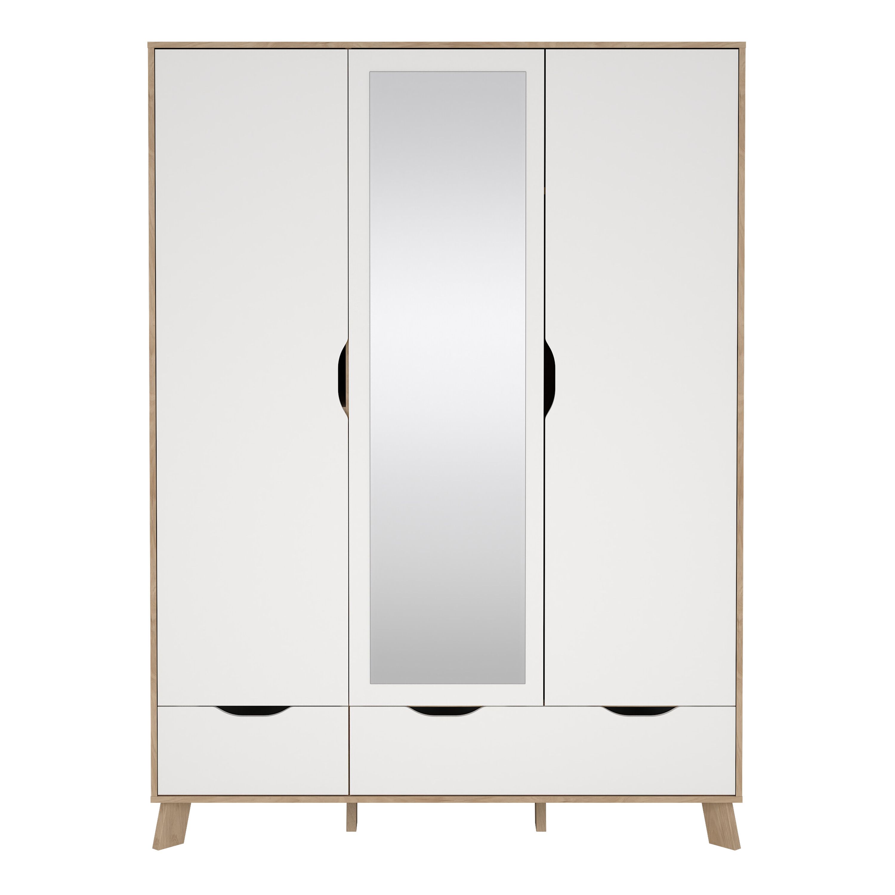 Wardrobe - IKRON 3 Doors and 2 Drawers Mirrored Wardrobe Jackson Hickory and White 147cm